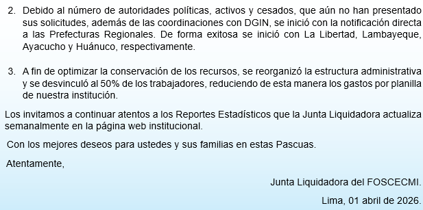 El Fondo de Seguro de Cesación, es un organismo de Derecho Público Interno, con autonomía administrativa, económica y financiera, dependiente del despacho Ministerial, creado por Decreto Supremo N° 001-77-CCFFAA del 10 de Enero de 1977, modificado sucesivamente por los Decretos Supremos N°010-85-CCFFAA del 24 de Julio de 1985, N° 041-DE/CCFFAA del 25 de Junio de 1997, y N° 048-DE/CCFFAA-D1-PERS del 18 de Septiembre de 1998.